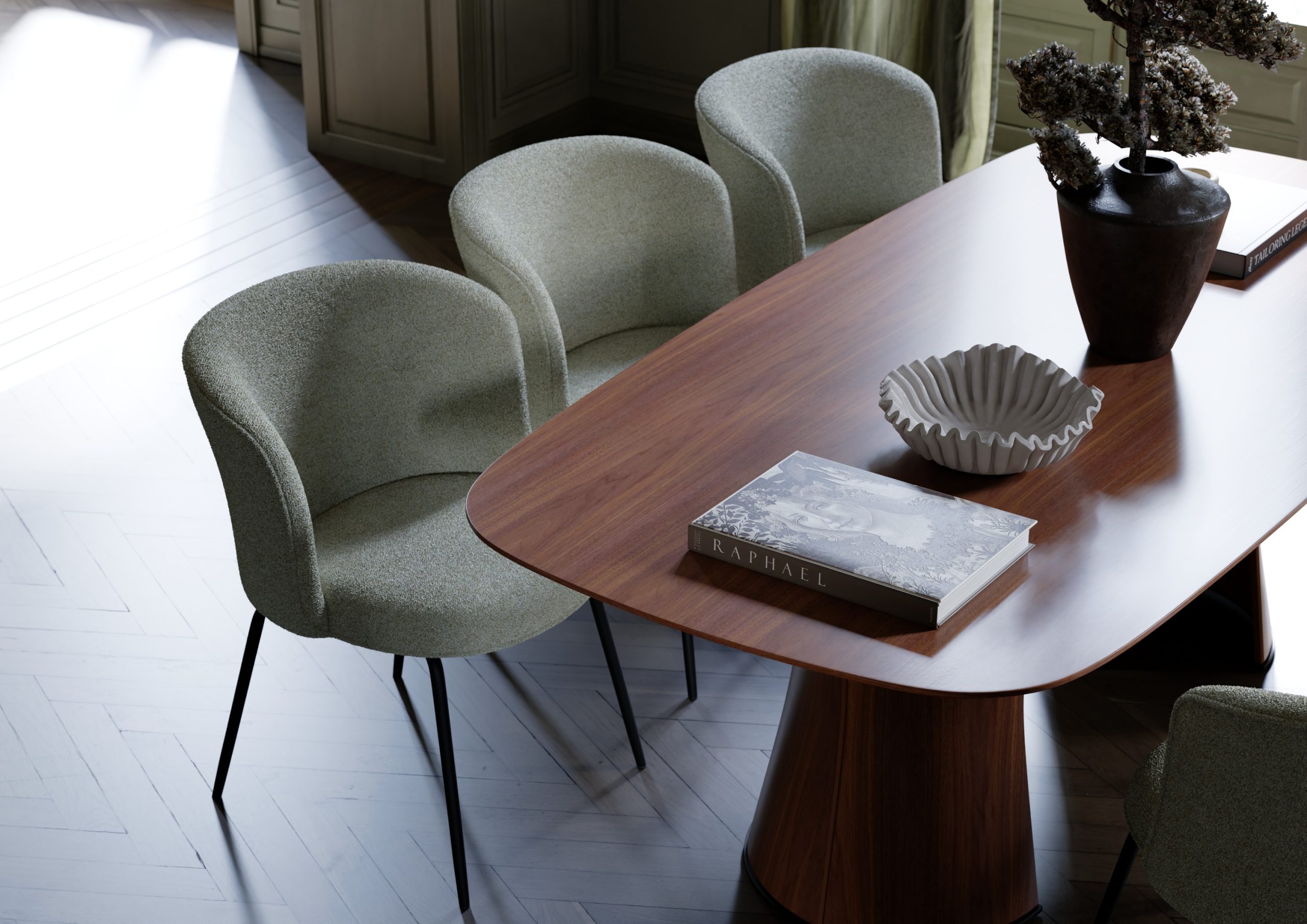 北欧と日本の空間には、“余白”を大切にする文化が共通してあります。DAN-FORM のチェアは光や素材の質感を引き立て、どんな部屋にも静かに調和します。置くだけで、日常の中に小さな心地よさが生まれる存在です。