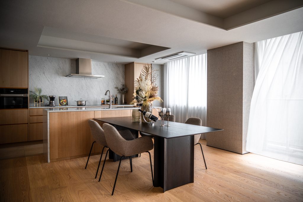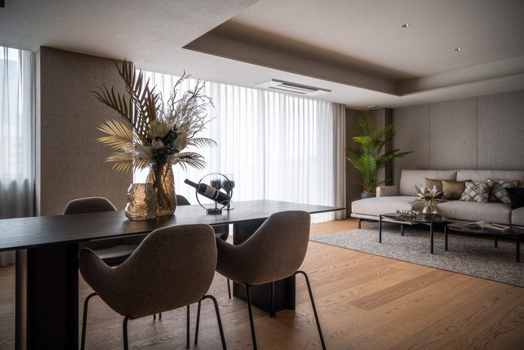 通常の広角撮影とは異なる撮影手法。風にたなびくカーテンや窓から差し込む斜光線。内と外の繋がりや極上のロケーション、暮らしの中の空気感にフォーカし、インテリアマガジンのようなアートな1枚をお届けします。